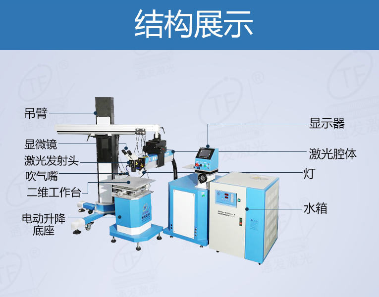 通發激光特大型模具TFL-200Ⅲ-DB吊臂激光焊機,幫您解決大型汽車模具修復難題,不要模具移動,吊臂激光頭操縱桿控制運動移動實現輕松激光修復20噸的模具,修復特大型模具利器。