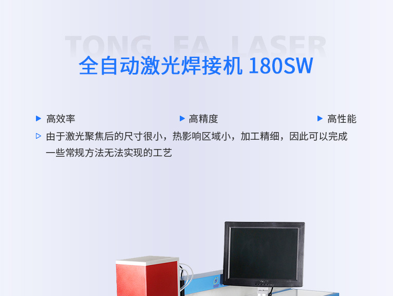 通發(fā)激光TFL-180SW振鏡式激光焊接機(jī),采用2軸高速掃描振鏡,焊接速度是工作臺(tái)移動(dòng)的5倍,滿(mǎn)足0.5mm以?xún)?nèi)料厚不銹鋼多點(diǎn)擊穿疊加焊接,也適用手機(jī)五金不銹鋼螺柱高速激光焊接加工。