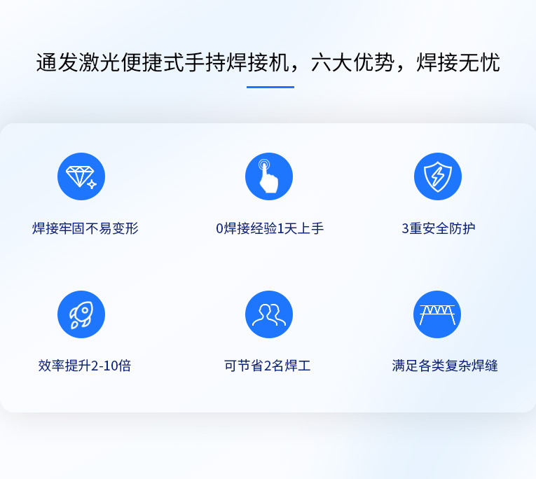通發(fā)激光便捷式手持激光焊接機,小巧便攜,方便移動,適合戶內外外工地移動焊接,是遠距離焊接大工件的全新焊接利器。