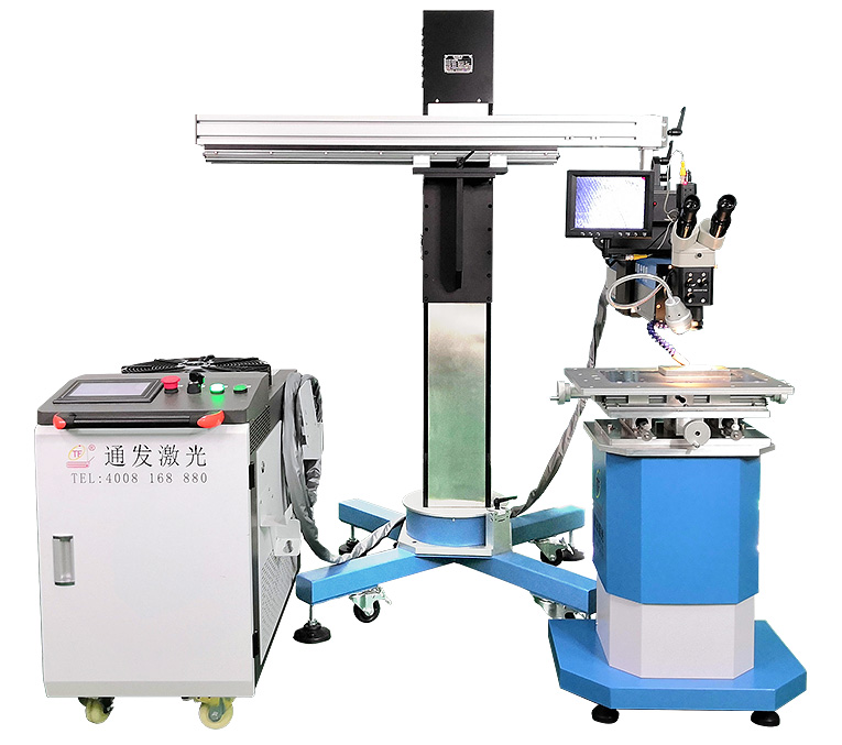 采用光纖激光器,反射率高,能量強,免維護,免調光,功耗少,相比傳統 模具焊來說,體積小,安全,穩定性好超長使用壽命。 1000W光纖激光器,滿足銅、鋁焊接量大的模具及產品焊接加工需要。 高承重底座及工作臺,保持輕便靈活的優點,同時提供更高承載能力。 配備.1.5P大功率一體式水冷水機,保證了大功率焊接的穩定性。